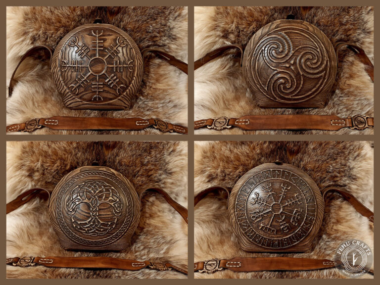 This bags is made from one piece of aged ash wood, stained with Bismarck brown stain- one of the oldest natural stains.