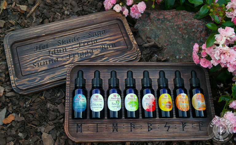 The mixtures can be used as energy boosters, a way to get closer to the Norse Goddess’s different faces, at ceremonies, blot, ritual work, sejd (seidr), soul travels, meditations or wherever you feel that you need to strengthen yourself in your power and inner balance.