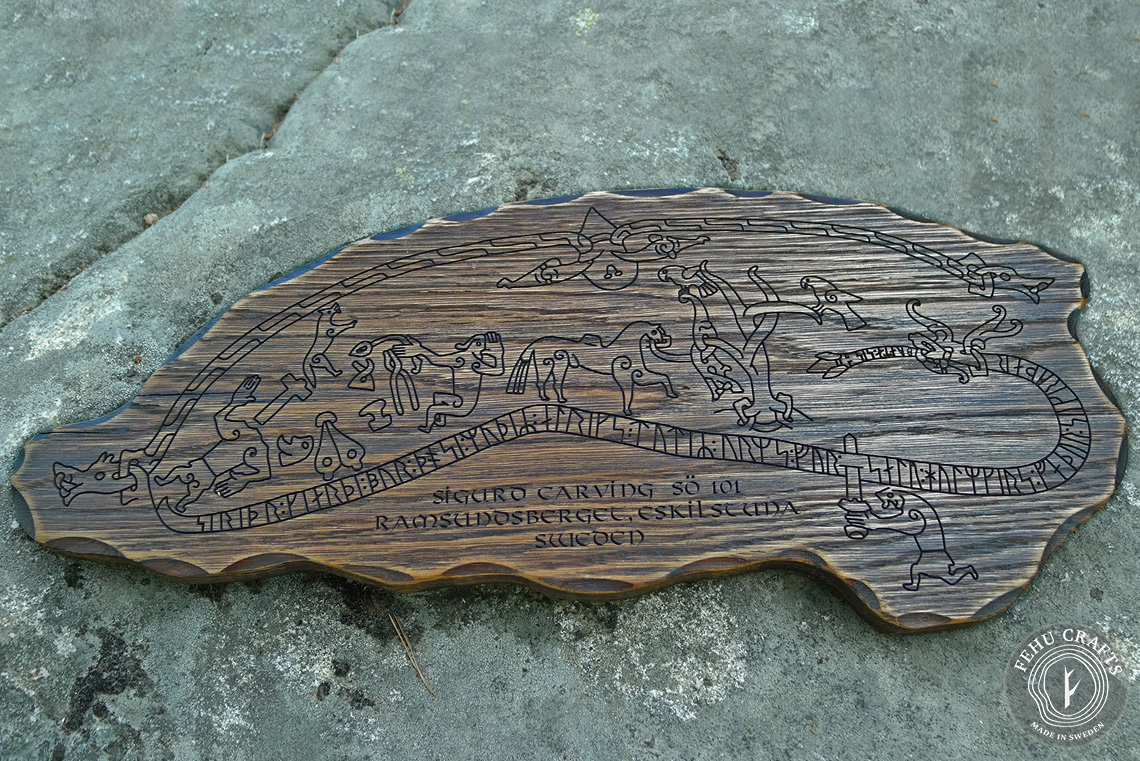 We are very proud to present a precise replica of Sweden’s most impressive runic carving – The Sigurd Carving (Sigurdsristningen).