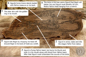We at Fehu Crafts are very proud to present a precise wooden replica of Sweden’s most impressive runic carving – The Sigurd Carving (Sigurdsristningen). Let us guide you what the pictures on the Sigurd carving is telling.
